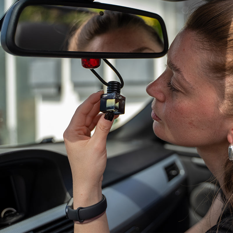 Mit unserem personalisierten MyCarfüm hast du den Duft deines Lieblingsparfüms immer in deinem Auto.